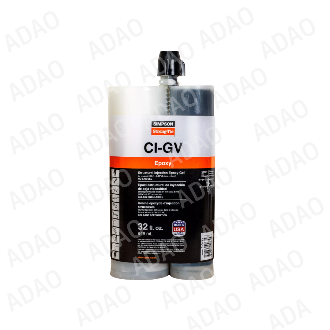 - Se adhiere químicamente al hormigón para proporcionar una reparación estructural. CI-GV sella la grieta, impidiendo la entrada de humedad y protegiendo las barras de refuerzo del hormigón contra la corrosión.